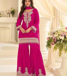 Pink georgette sequins work semi stitched salwar suits suits size up to 42