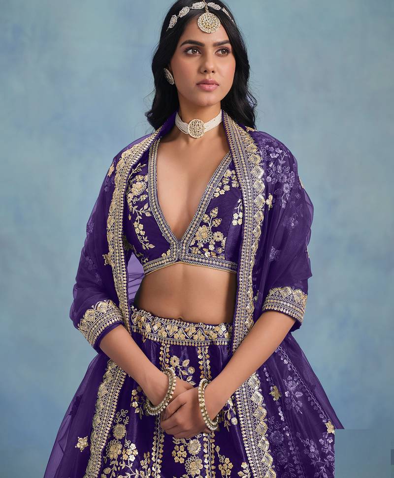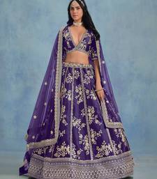 Purple art silk sequins work semi stitched lehenga choli size up to 42