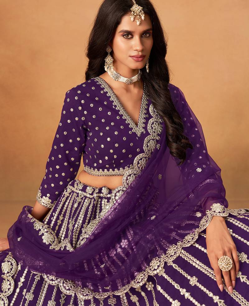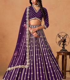 Purple art silk sequins work semi stitched lehenga choli size up to 42