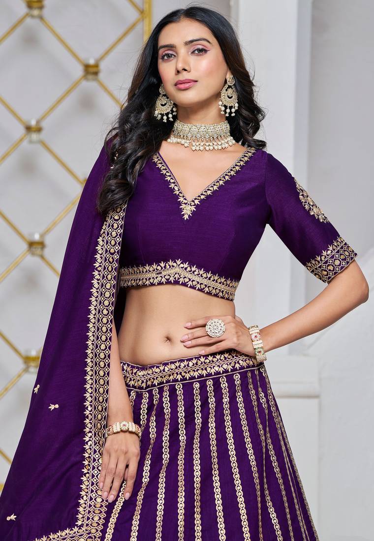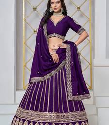 Purple art silk sequins work semi stitched lehenga choli size up to 42