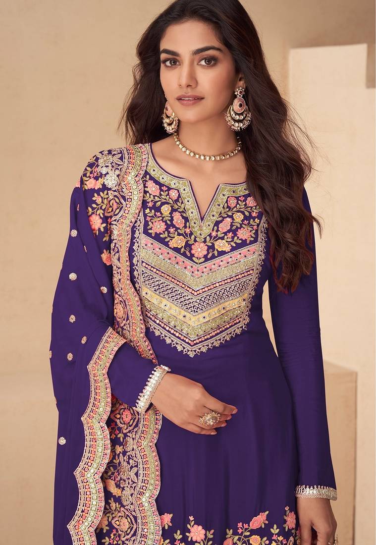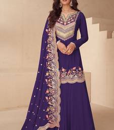 Purple chiffon sequins work semi stitched salwar suits suits size up to 42
