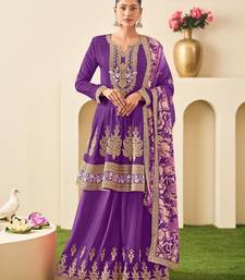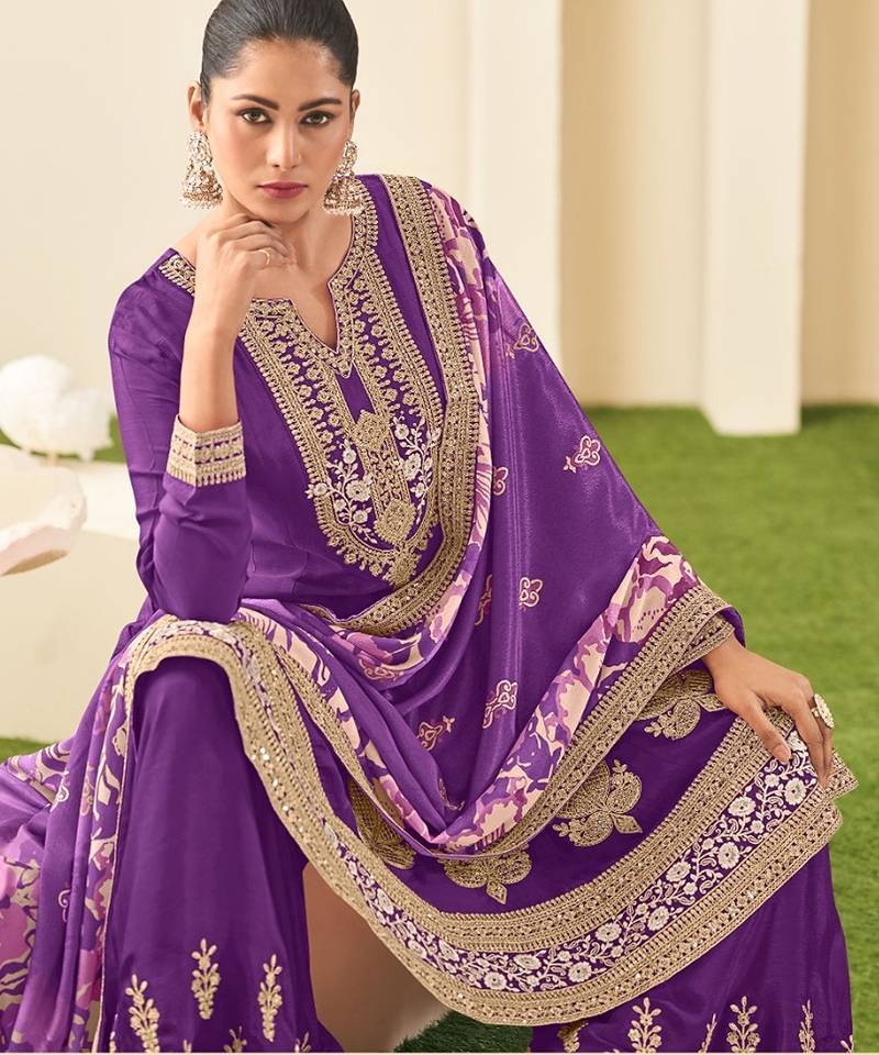 Purple chiffon sequins work semi stitched salwar suits suits size up to 42