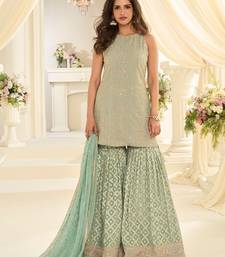 Sea green georgette sequins work semi stitched salwar suits suits size up to 42