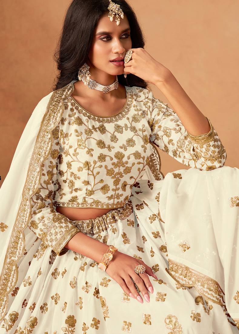 White organza hand embroidery semi stitched lehenga choli size up to 42