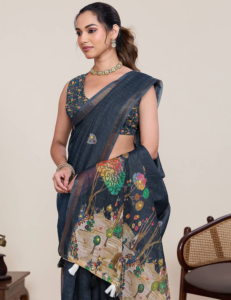 | Product Name | Black Linen Saree Printed Floral Pallu Traditional Wedding Wear Saree With Blouse Piece Set | |