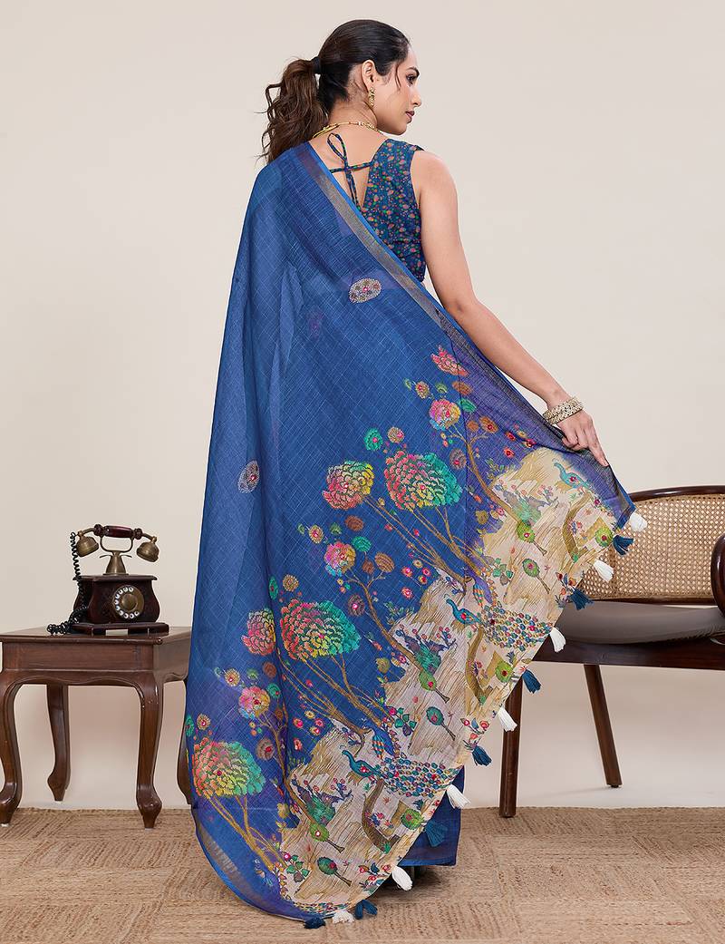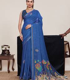 | Product Name | Blue Linen Printed Saree Designer Border Wedding Traditional Saree With Blouse Set | |