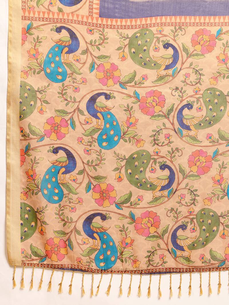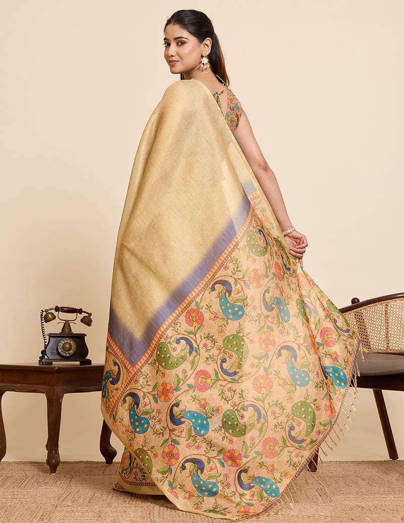 | Product Name | Cream Linen Floral Printed Zari Woven Saree Traditional Wedding Wear With Blouse Style | |