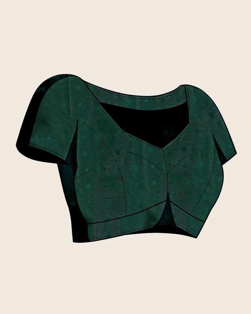 | • | Blouse | : | Color- Green / Fabric- Faux Banarasi |
