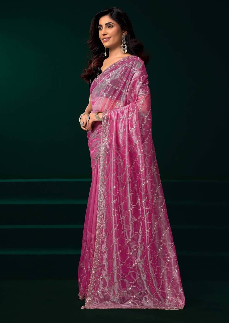 | Product Description | • Elegant Violet Net Saree With Heavy Sequins Embroidery And Scalloped Border Design