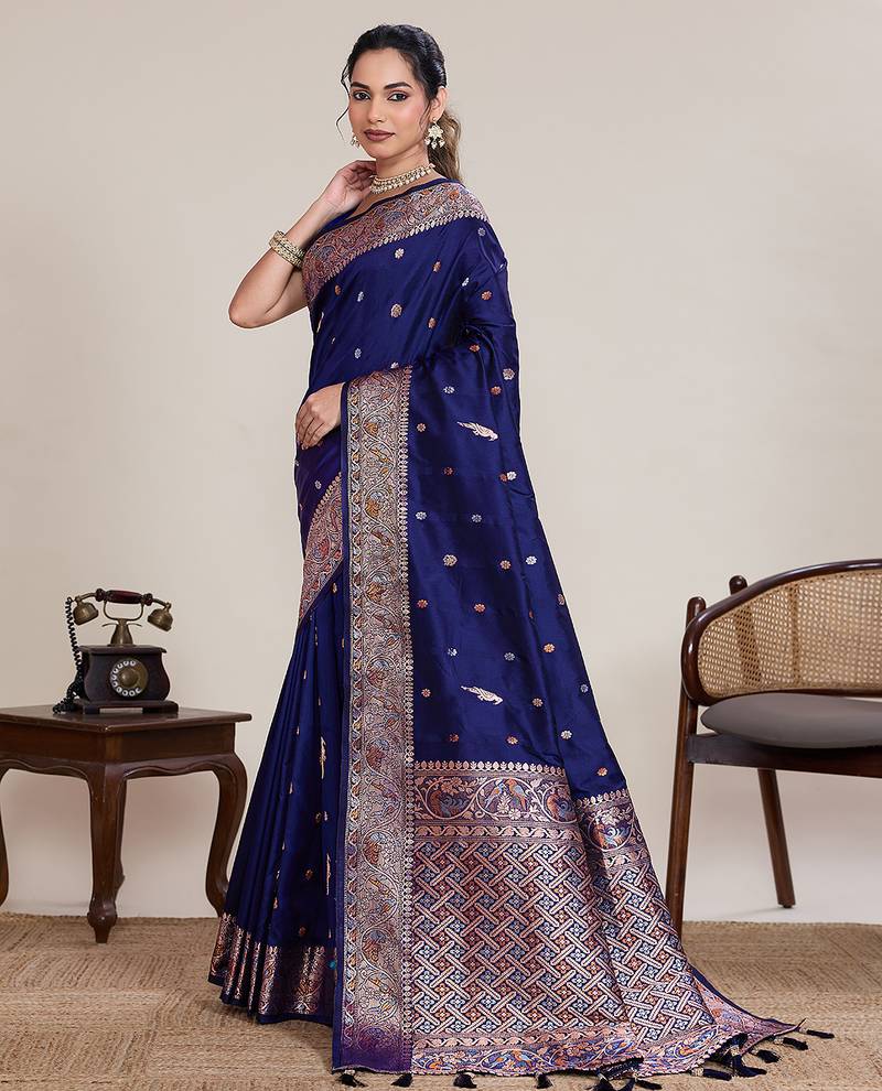 | Product Name | Navy Jacquard Silk Saree Traditional Zari Work Heavy Pallu Party Wedding Saree With Blouse | |