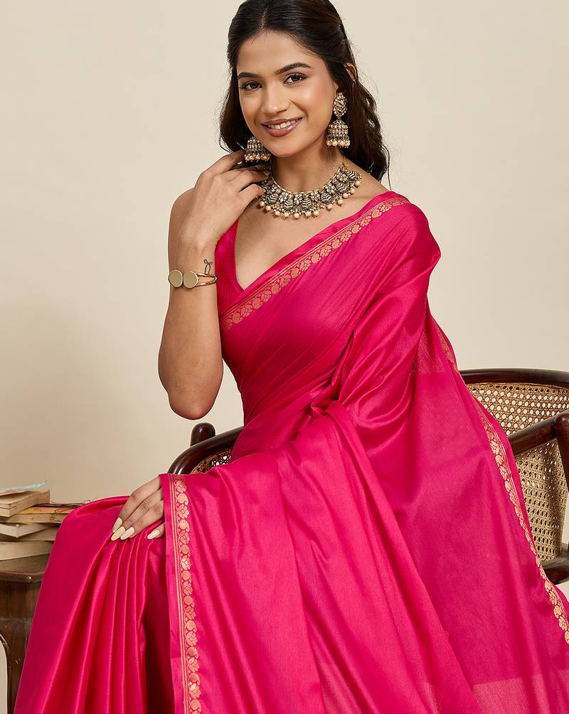 | Product Name | Pink Banarasi Silk Saree Zari Woven Wedding Traditional With Blouse Elegant Party Wear | |