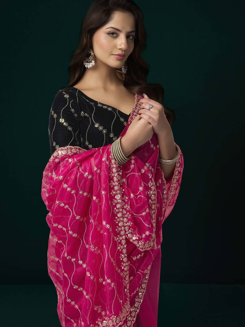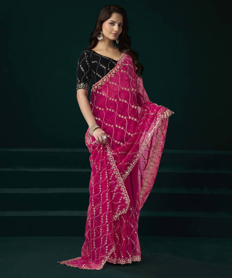 | Product Name | Pink Designer Net Saree Sequins Embroidery Party Wear With Velvet Blouse | |