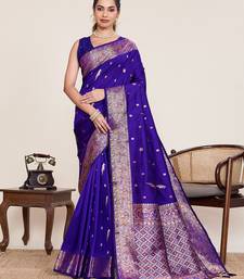 Purple jacquard silk saree zari woven border designer wedding saree with blouse set