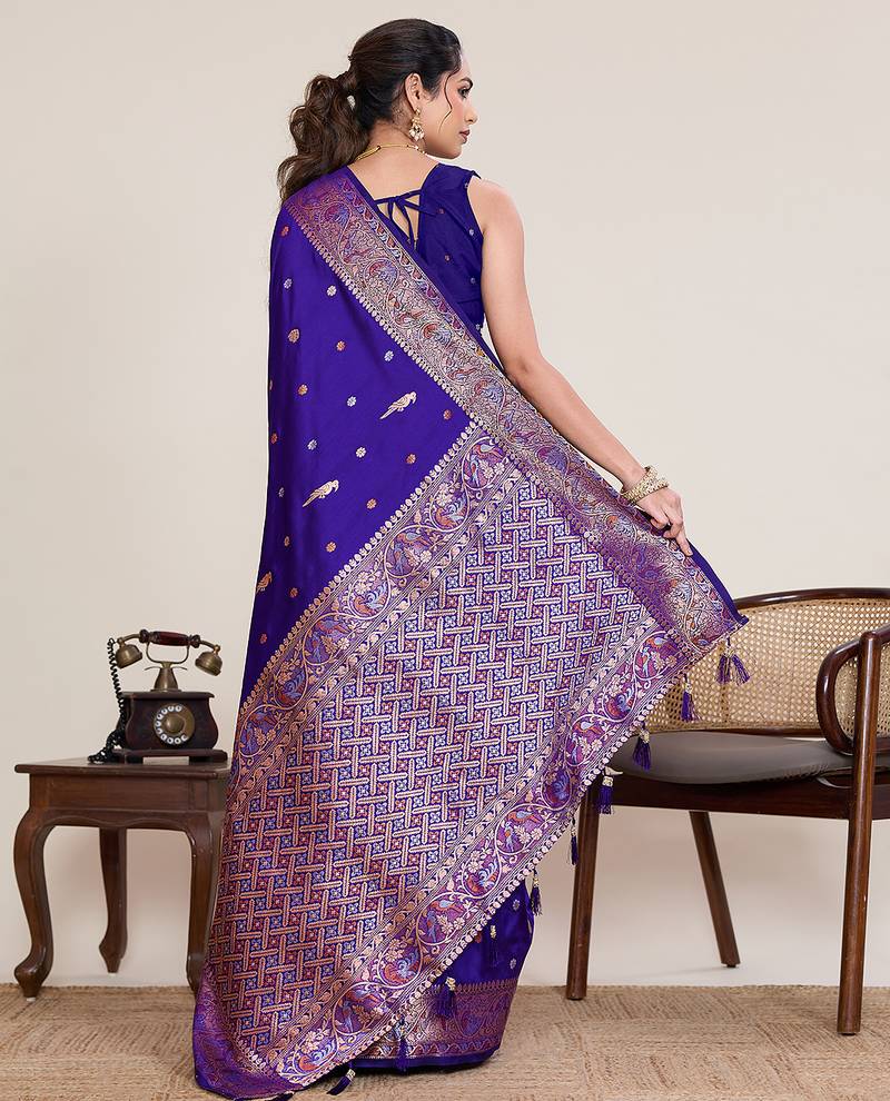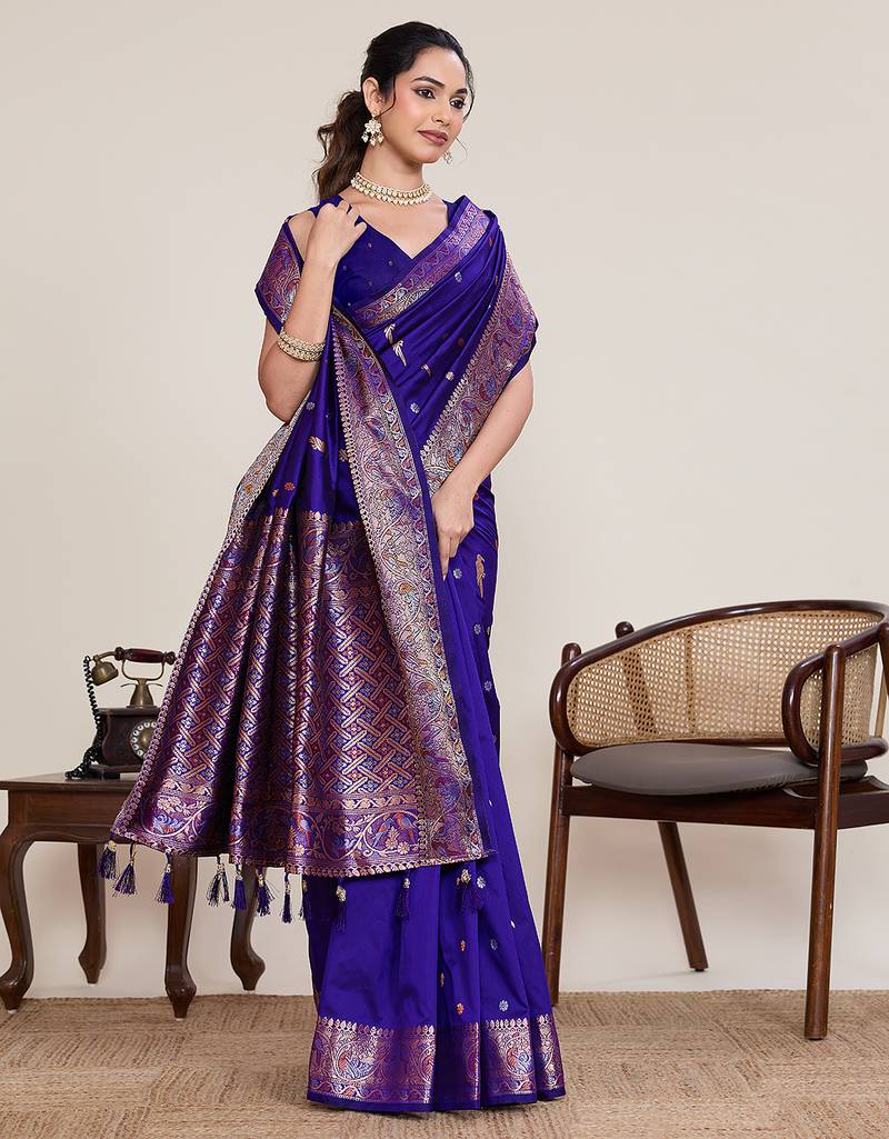 | Product Name | Purple Jacquard Silk Saree Zari Woven Border Designer Wedding Saree With Blouse Set | |