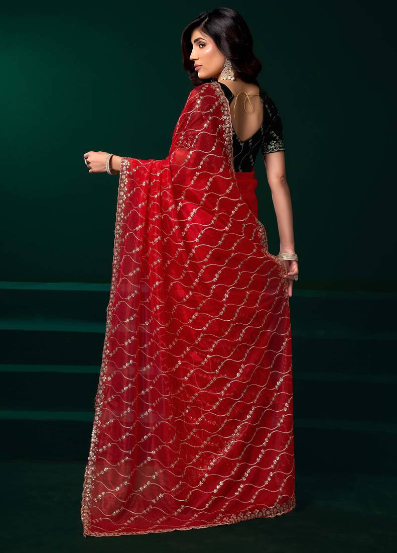 | Product Name | Red Embroidered Net Festival Party Wear Saree With Velvet Blouse Piece | |