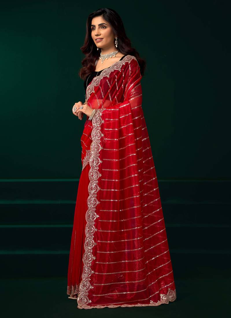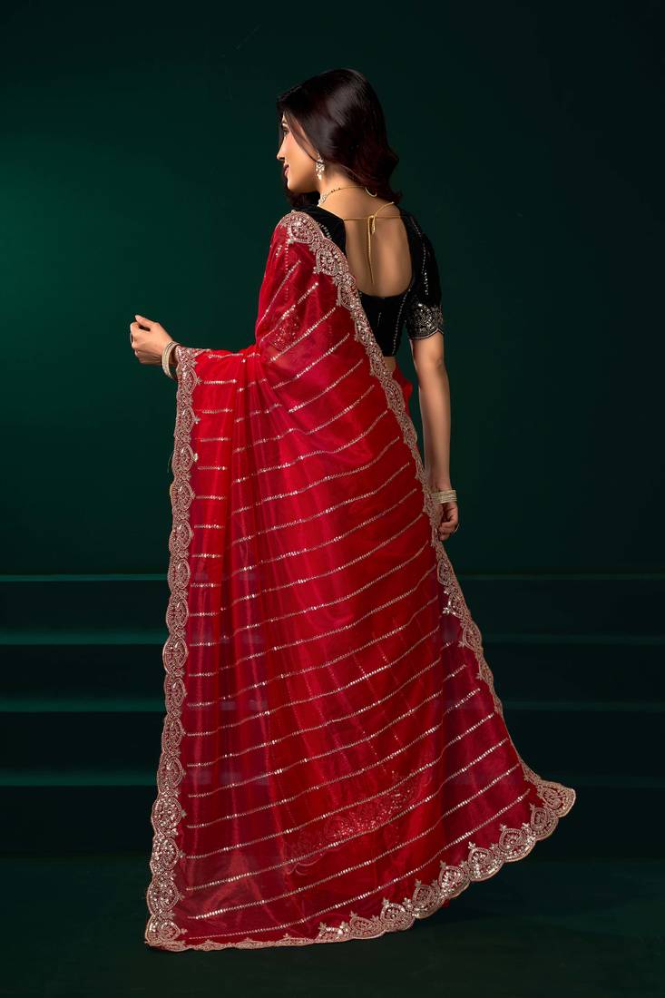 | Product Name | Red Traditional Net Sequins Work Saree With Unstitched Velvet Blouse | |