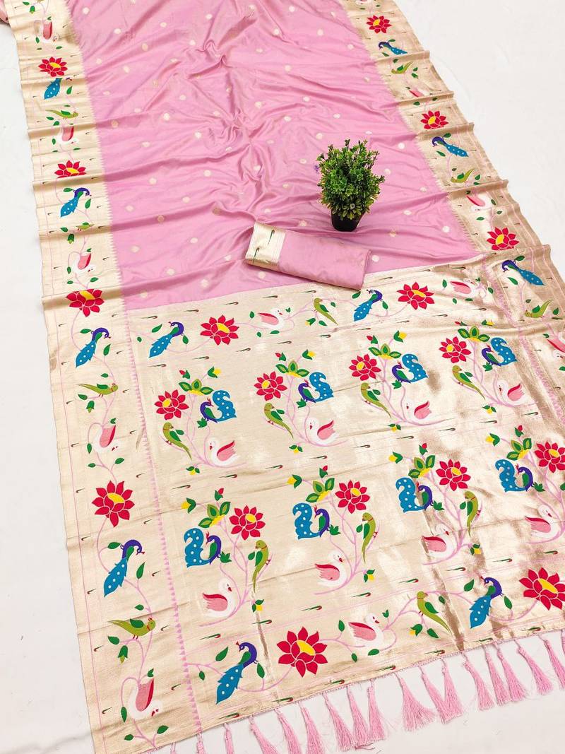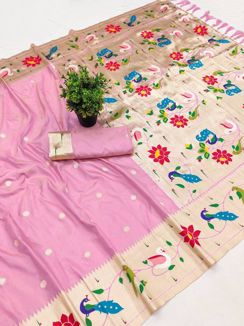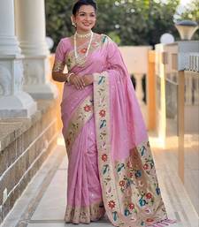 Baby pink faux banarasi silk saree with paithani rich weaved pallu and blouse