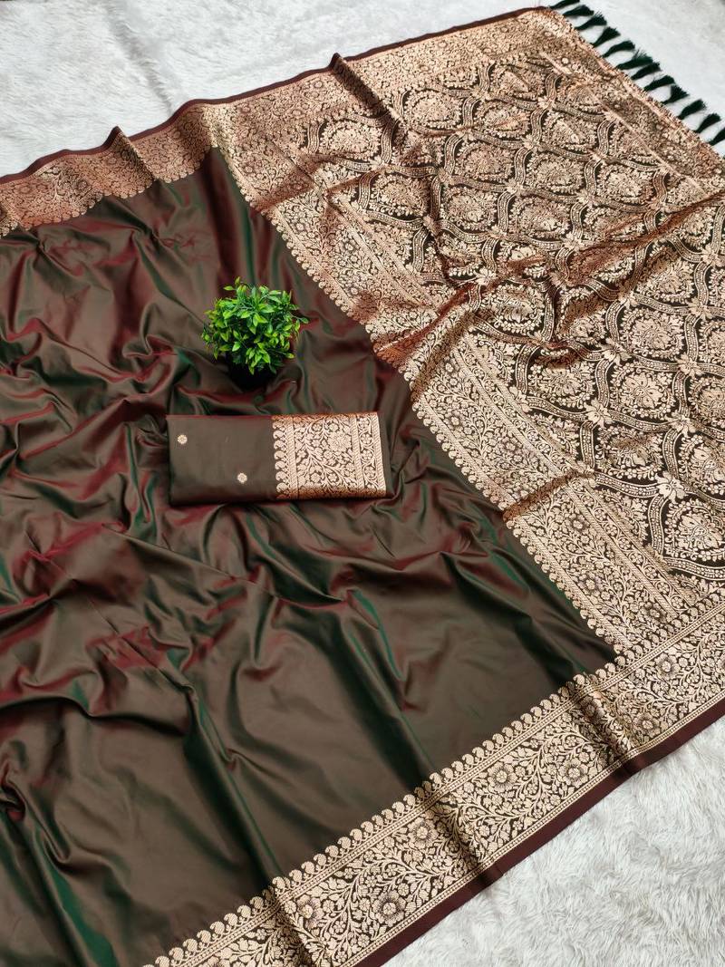 | Product Name | Brown Soft Banarasi Silk Fabric Saree With Natural Zari Weaving In Gala Border | |