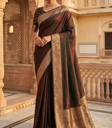 Brown soft banarasi silk fabric saree with natural zari weaving in gala border