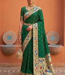 Green faux banarasi silk saree with paithani rich weaved pallu and blouse