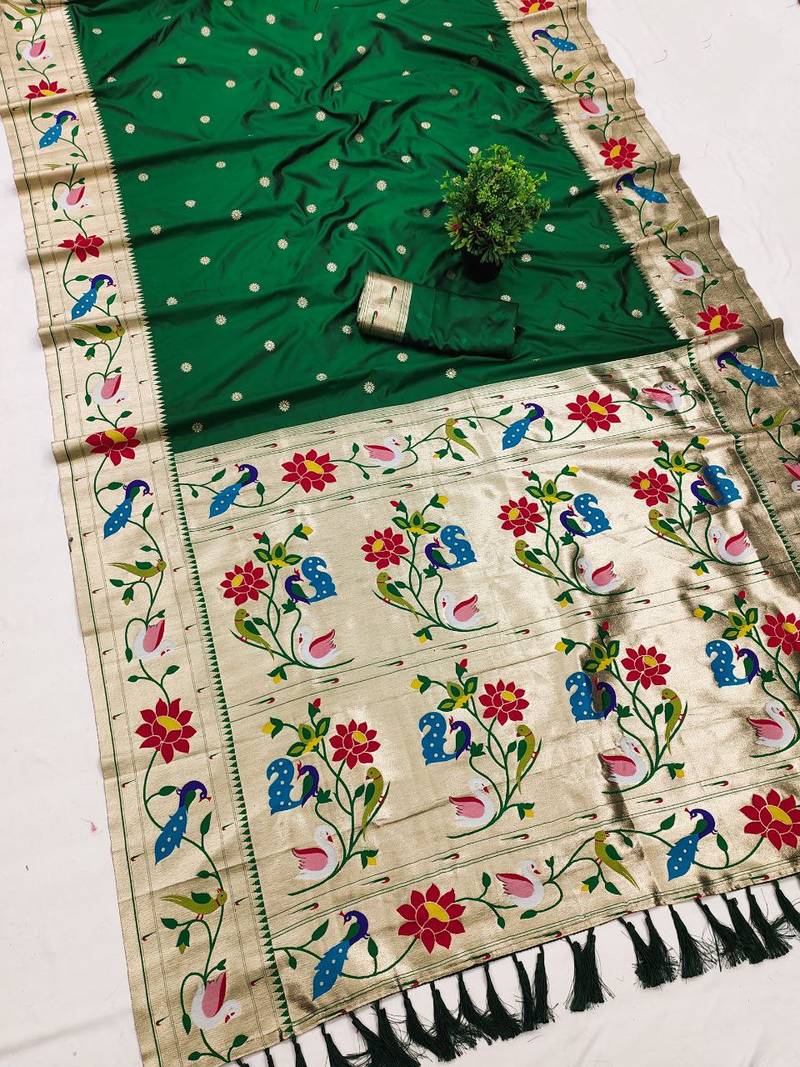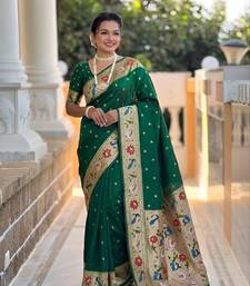 Green faux banarasi silk saree with paithani rich weaved pallu and blouse