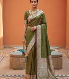 Green soft banarasi silk fabric saree with natural zari weaving in gala border
