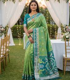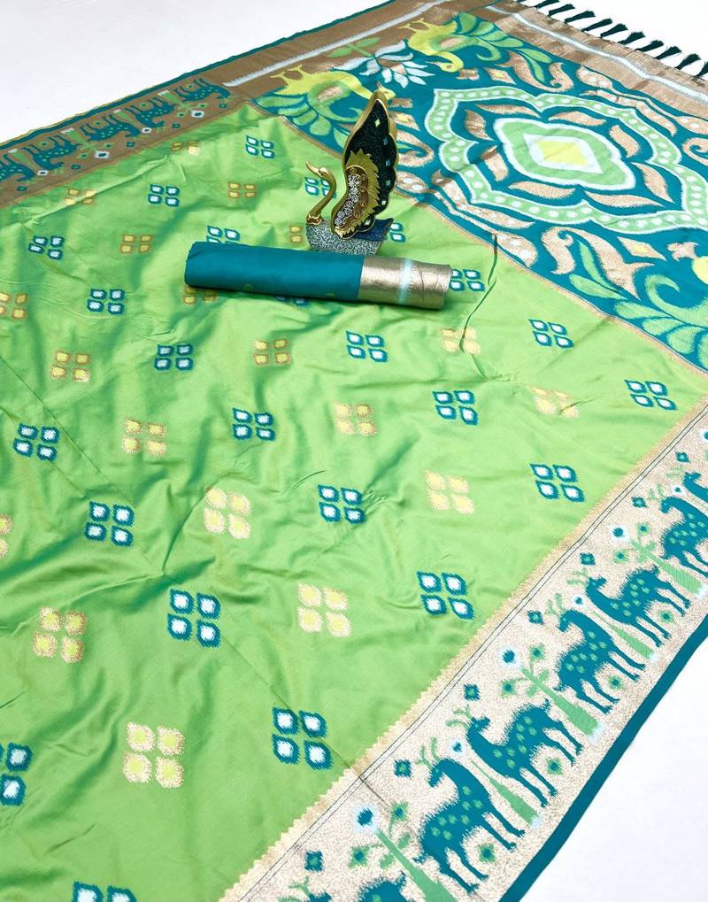 | Product Name | Green Soft Saree With Zari Weawing Meenakari Rich Pallu And Unique Ikkat Border | |