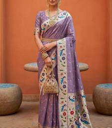 Lavender faux banarasi silk saree with paithani rich weaved pallu and blouse