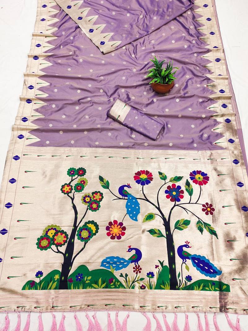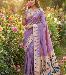 Lavender faux banarasi silk saree with paithani rich weaved pallu and blouse