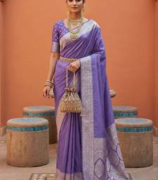 Lavender soft banarasi silk fabric saree with natural zari weaving in gala border