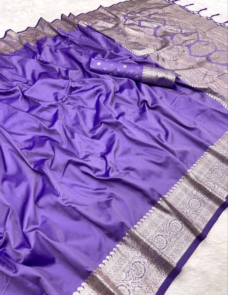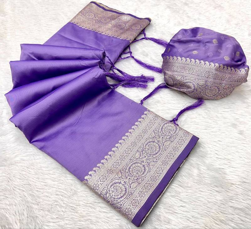 | Product Name | Lavender Soft Banarasi Silk Fabric Saree With Natural Zari Weaving In Gala Border | |