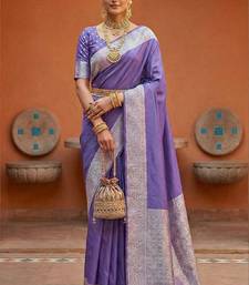 Lavender soft banarasi silk fabric saree with natural zari weaving in gala border