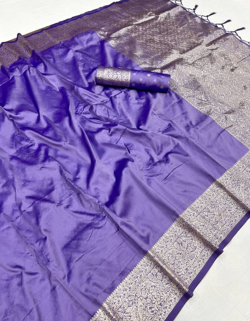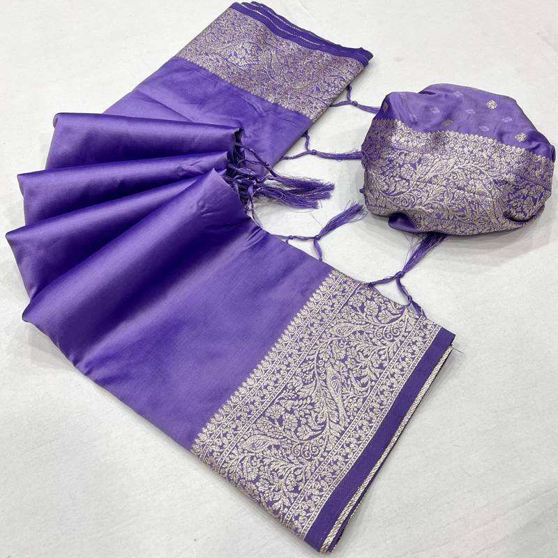 | Product Name | Lavender Soft Banarasi Silk Fabric Saree With Natural Zari Weaving In Gala Border | |