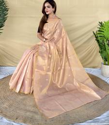 Light pink zari tissue weaving saree with all over elephant pattern motifs on border