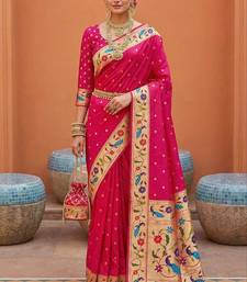 Pink faux banarasi silk saree with paithani rich weaved pallu and blouse