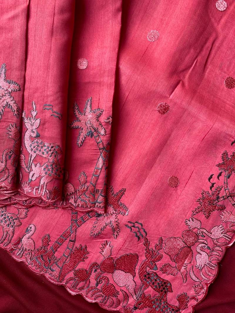 | Product Name | Pink Matka Silk Saree With Heavy Floral Embroidery Border With Running Blouse | |