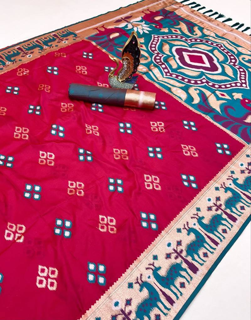 | Product Name | Pink Soft Saree With Zari Weawing Meenakari Rich Pallu And Unique Ikkat Border | |