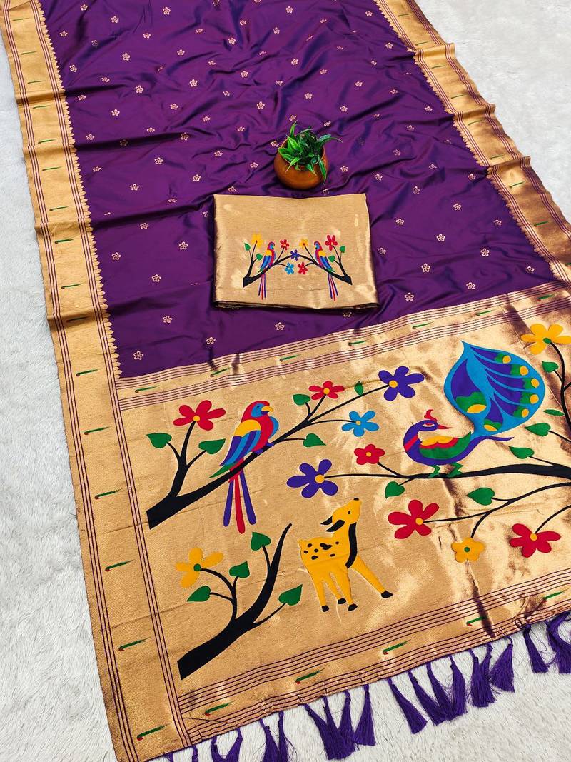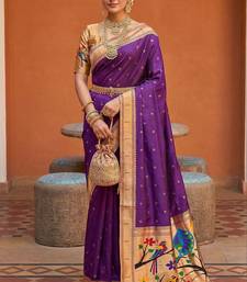 Purple faux banarasi silk saree with paithani rich weaved pallu and blouse