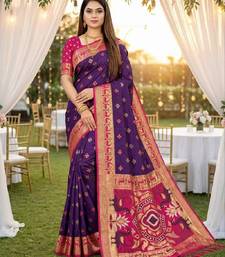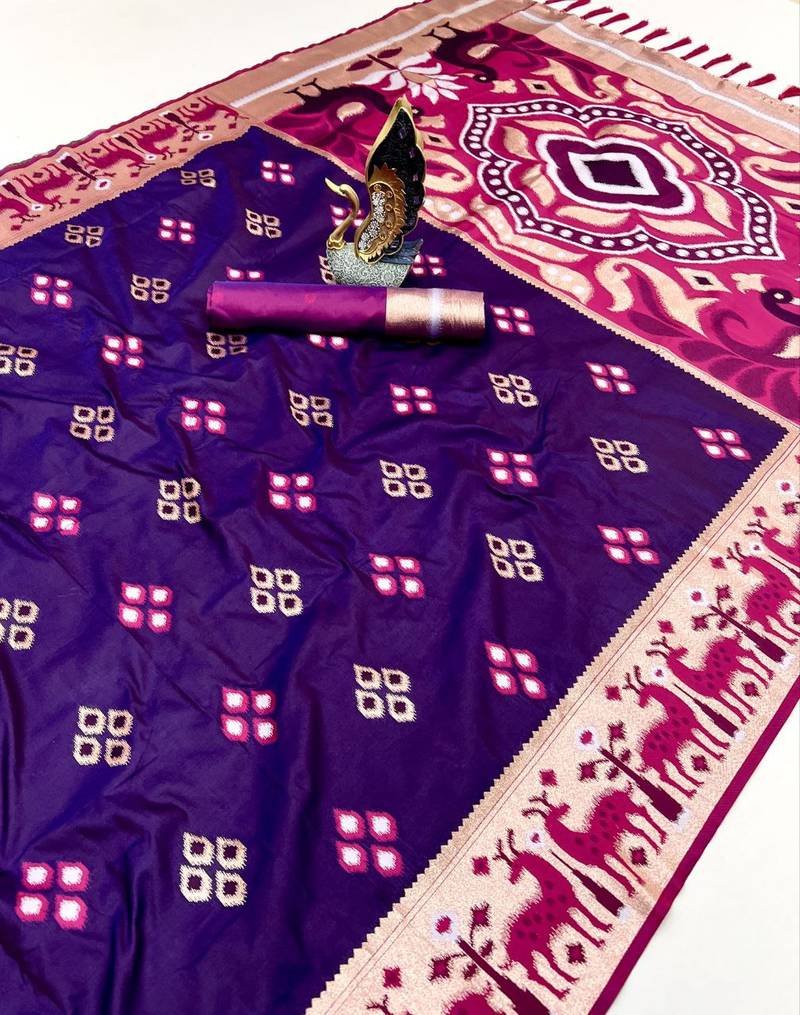 | Product Name | Purple Soft Saree With Zari Weawing Meenakari Rich Pallu And Unique Ikkat Border | |