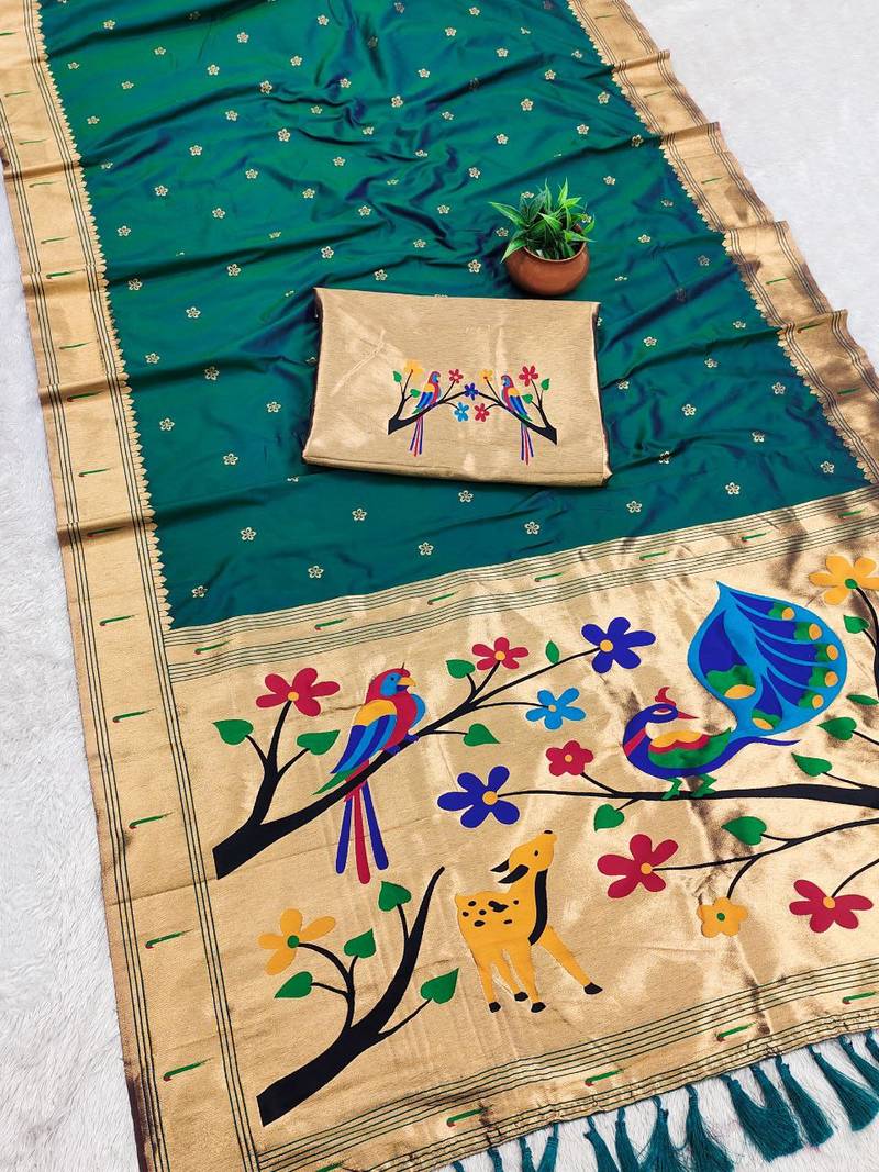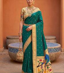 Rama faux banarasi silk saree with paithani rich weaved pallu and blouse