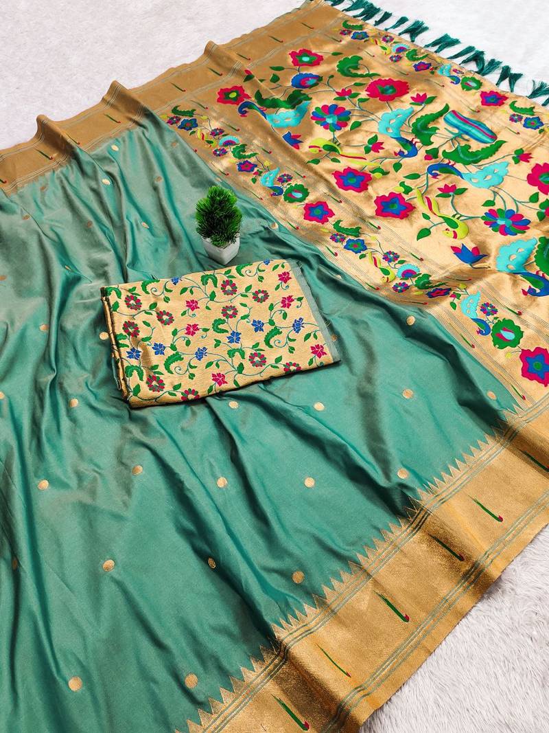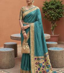 Rama faux banarasi silk saree with paithani rich weaved pallu and blouse