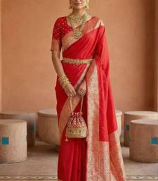Red soft banarasi silk fabric saree with natural zari weaving in gala border