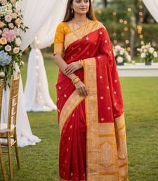 | • | Saree | : | Color- Red / Fabric- Faux Banarasi |