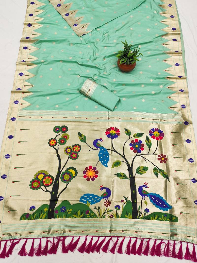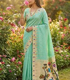 Sea green faux banarasi silk saree with paithani rich weaved pallu and blouse