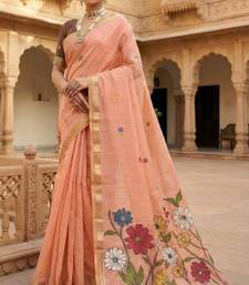 | • | Saree | : | Color- Peach / Fabric- Cotton |