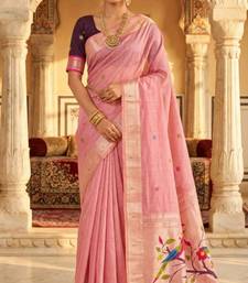 Soft pure muga cotton saree with meenakari weaving motifs and contrast blouse