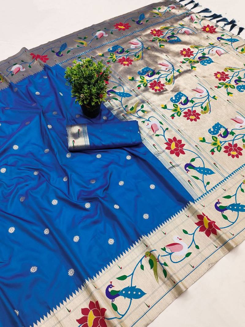 | Product Description | Soft Paithani Silk Saree With Meenakari Weawing Design And Rich Meenakari Weawing Pallu With Zari Weawing Border & Tessels Attach At Pallu End , Silk Weawing Blouse Piece |