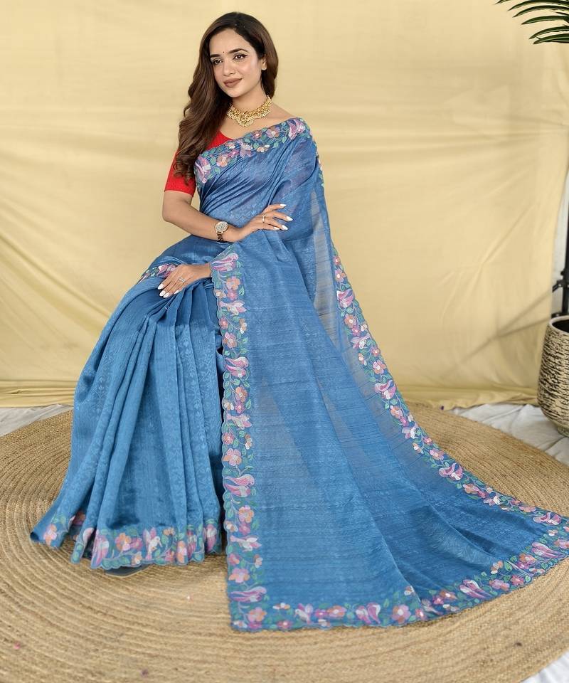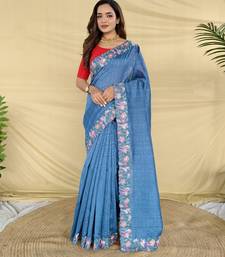 | Product Name | Teal Tussar Saree With Contrast Embroidery With Running Blouse | |