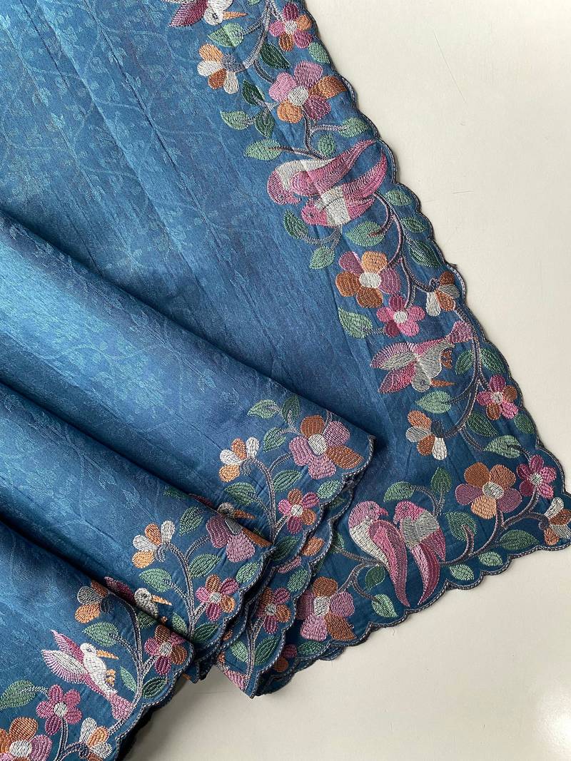 | Product Description | Ure Tussar Saree With Premium Contrast Embroidery All Over The Border With Floral Pattern And Contrast Embroidery On The Body.Blouse As Shown In The Videos. |