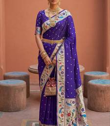 Violet faux banarasi silk saree with paithani rich weaved pallu and blouse